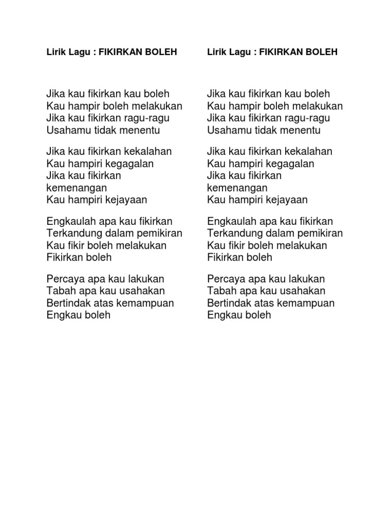 Panas kerana kamu boleh pitam. 112 ii BA J1. Bagi menyemarakkan lagi rasa cinta dan sayang pada negara kita Malaysia kami kumpulkan kepada anda 12 lagu patriotik terbaik beserta lirik yang boleh anda nyanyikan dalam apa jua majlis dan bila-bila masa.